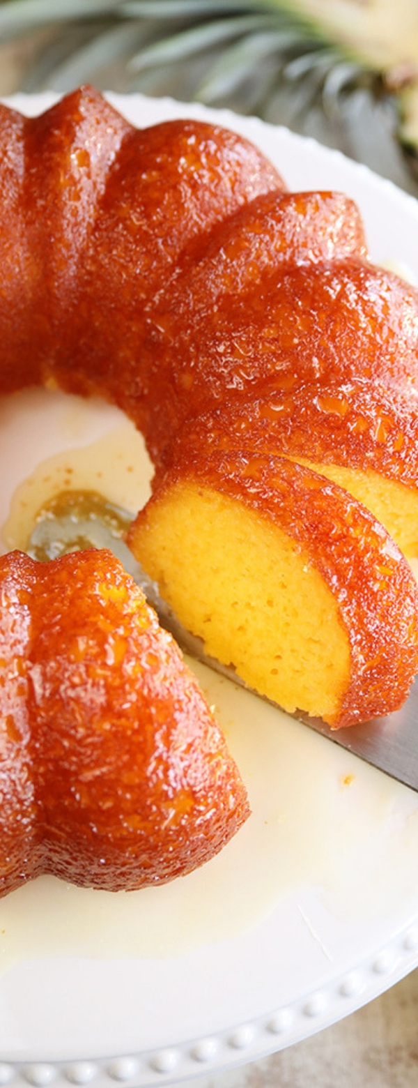 - Use an electric mixer to combine the cake mix, vegetable oil, pineapple juice, and eggs in a large bowl. Beat about 2 minutes. Pour the batter into the prepared pan.